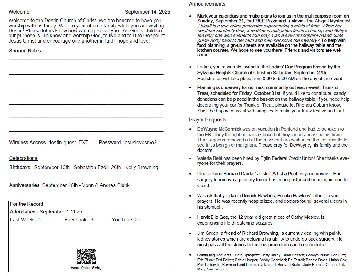 September 14, 2025 Bulletinby David Baileyin 2025 Bulletinson Posted on September 13, 2025September 13, 2025