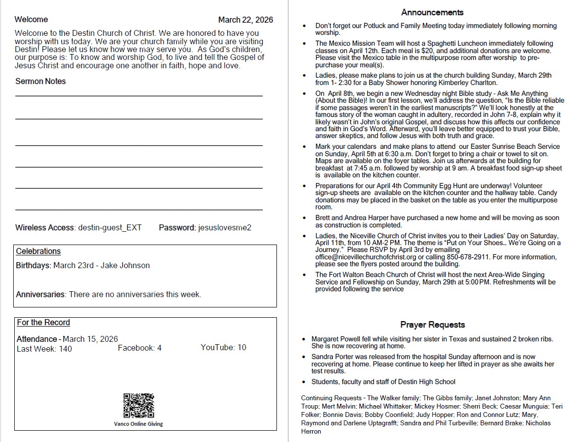 March 22, 2026 Bulletinby David Baileyin 2026 Bulletins, Uncategorizedon Posted on March 21, 2026March 21, 2026